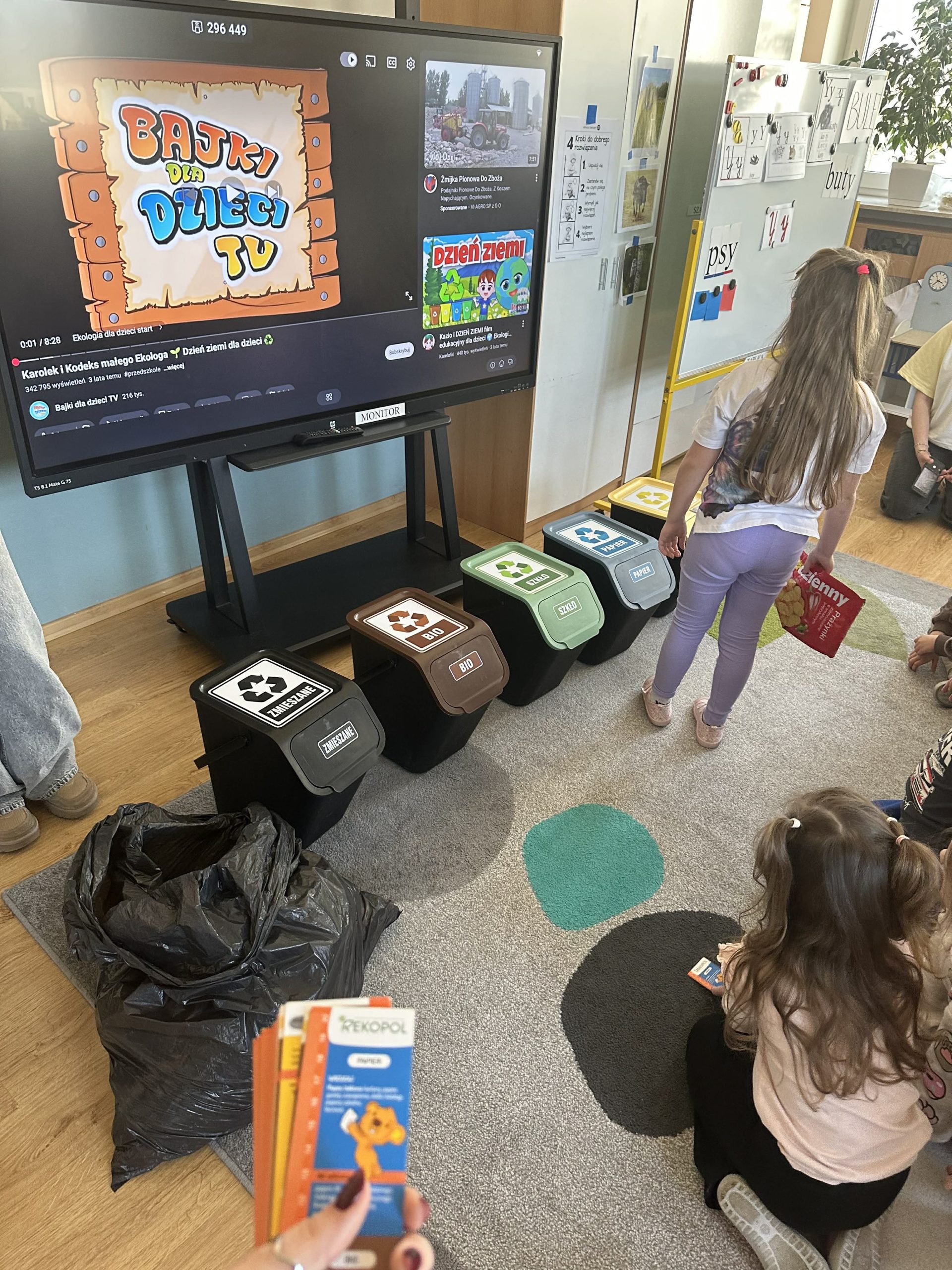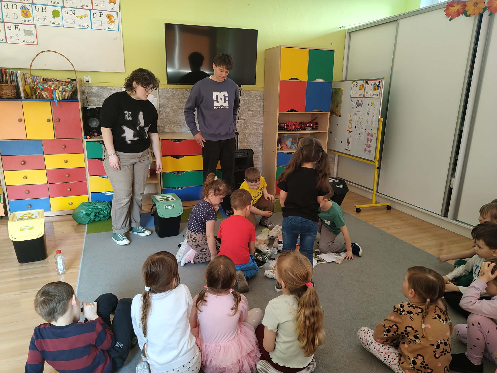 Młodzież przygotowała się do prowadzenia edukacji ekologicznej w różnych formach. Na początku młodzi edukatorzy zainteresowali barwnymi prezentacjami. Dzieci aktywnie uczestniczyły w pogadance o problemach w środowisku. Prześcigały się w udzielaniu odpowiedzi. Zaskakująco opowiadały o sposobach ratowania planety. Każdy przedszkolak mógł sprawdzić się w ciekawie przeprowadzonej segregacji odpadów, które trafiały do kolorowych pojemników. Finalnym zadaniem były quizy podsumowujące zajęcia. Przedszkolaczki poprzez ukierunkowaną zabawę edukowały się bardzo aktywnie i z wielkim zainteresowaniem. Pod koniec spotkania zostały nagrodzone przygotowanymi przez uczniów ekologicznymi medalami „Strażnik przyrody” i zakładkami do książeczek oraz kolorowankami ufundowanymi przez Związek Komunalny Gmin Ziemi Lubartowskiej. Nad całością warsztatów czuwała koordynatorka projektu Grażyna Joachimowicz.