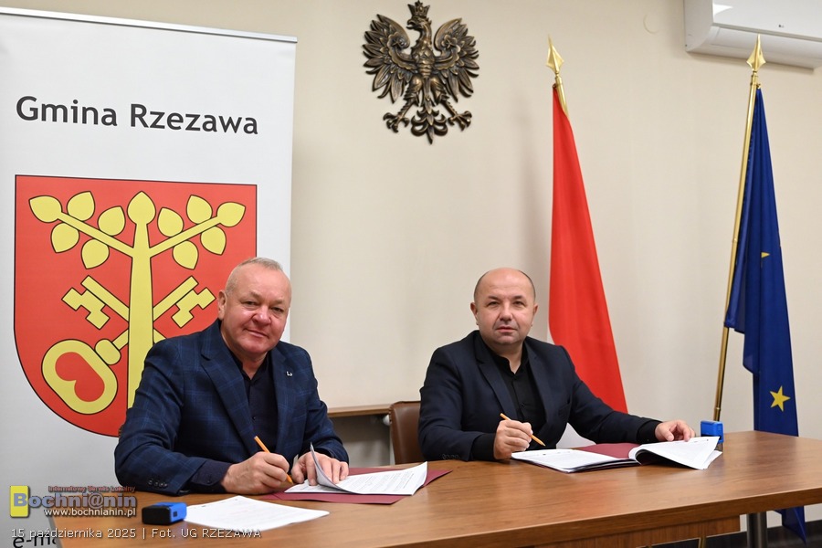 Umowę podpisali wójt Gminy Rzezawa Zbigniew Biernat oraz przedstawiciele firmy Transbet z Rzezawy, która została wykonawcą inwestycji. Zakończenie prac planowane jest na koniec lutego 2027 roku.